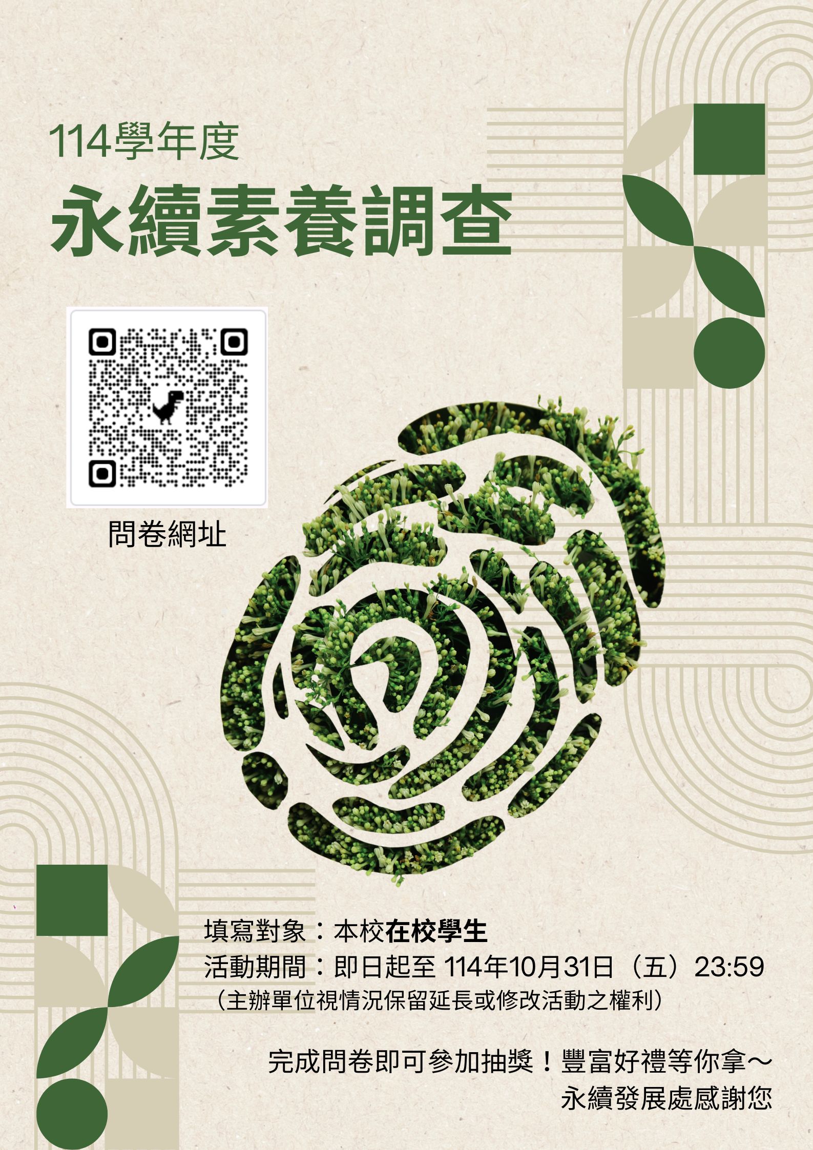 To understand our students’ current awareness and literacy regarding “sustainable development”, we are conducting this survey. The goal is that the analysis of the questionnaire data will serve as an important reference for future on-campus sustainability education and policy promotion.